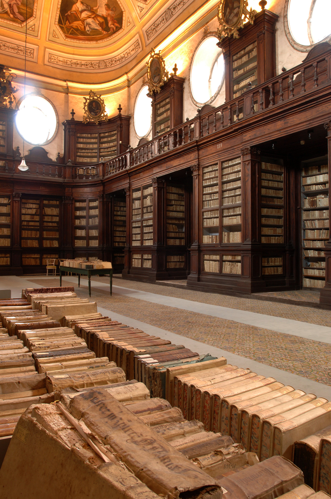 Over the years I’ve had many fine library moments, running around London’s library was pure joy, Sydney University library, had my face pasted with a smile, like the joker, for the entire day. Recently I visited my local library after it had major renovations, and I declared I’d found my utopia. I also have fond memories of visiting the Lands Title’s office and feeling like Alice in Wonderland as I struggled to open the huge record books. The large tomes are the size of a house; well a moped at least – seriously! I still have a world of libraries to conquer. I may start with the one pictured; it’s the Anscient Ursino of rare books in Sicily, Italy, or we could search for the lost books/library of Alexandria. Does anyone want to join me?